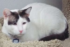 My sister, Nancy, and I are a package deal – and what a deal it is! Some siblings (feline and human) get along just okay, but we’re really bonded – playing, sleeping together, and being with each other for support. We also get along with people, small and large, and although I tolerated the three dogs in our home, Nancy was awfully frightened of them, so a place that’s dog free would be best for us. Our mom moved out of state and couldn’t manage the dogs and us, too, so now’s your chance to make two 2-year-old Snowshoe Siamese lovers yours (and in case you’re unfamiliar with the breed, being lovers is what we’re famous for!).