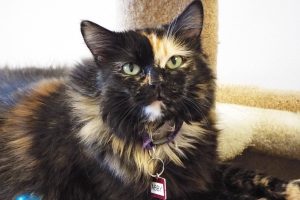 My mom fell in love the day she met me here and we shared a joyous life until she moved to assisted living. Now everyone says that I’m sweetness itself, but sort of like “the little girl with the little curl” — when I want love, I nudge and rub until I get it, but when I’ve had my fill, I’ll let you know that too! I’m a gorgeous, longhaired torti girl, who’s sometimes chatty, and sometimes laid back, but almost always like to sit in your lap or just be near you. I get my exercise playing with feather toys and laser lights, but do have a tendency to overeat, so a Weight Watchers regimen might do me good for a while! Won’t you be the one to make this time around a charm for me?