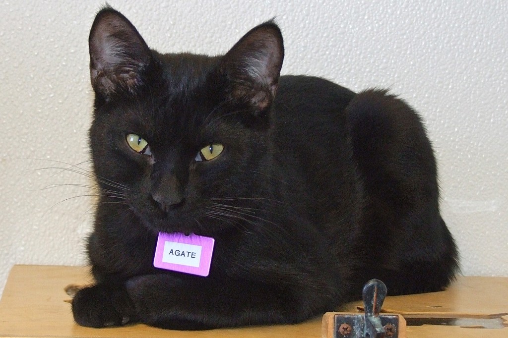 My siblings and I were found under a house in Sahuarita when we were four weeks old. With no mom to care for us, we went to live with a wonderful foster mom who gave us tons of TLC. She said that my brother, Sapphire (who is still here with me), and I were the “runts” of the litter and very bonded so she really hoped we’d be able to find a home together. Because of all the handling we got as babies (the baths and blow dries weren’t great, but snuggling in warm towels afterward was terrific!), she said, “They may seem ‘ordinary’ black kittens to the casual eye, but they have exceptionally sweet temperaments and need a lot of cuddling and love.” Wouldn’t you like to be the one to give us that?