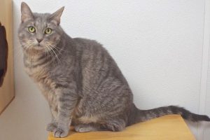 If you’re the kind of person who enjoys the feel of soft blankets and furry things, you’re going to adore me! I have the plushest grey fur (and, of course, I love having you check it out!). After a move to California, my feline housemate and I started fighting, so mom brought me back to my alma mater to find a new home. She said, “Ariel is the sweetest lap cat, loves to be petted and rubbed on her head, enjoys treats, and playing with her cat toys. Although she’s shy with strangers, she liked to sleep with me, so she’ll make a wonderful companion for someone.” I second that, so come meet me now!