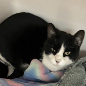 I’m an absolute love, as long as you are not a canine! In my last home I liked to stalk and attack the resident dogs, so needless to say I wore out my welcome there. Please keep me from that temptation going forward! I like to sleep with people and I love petting, brushing and scratching. My last owner said I don’t scratch people or furniture (just dogs). like to sleep in dark cubbies. I have a soft black and white coat that invites your touch. If you come to meet me I will greet you and show you how friendly I am.