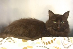 When you saw my name did you remember that that was the name of the Black Panther in Rudyard Kipling’s The Jungle Book? Well, don’t feel alone, my biographer didn’t either! I had a “behavior problem” when my family’s new baby arrived because I’d been happy with the status quo (except that the resident Alaskan Malamute scared the dickens out of me!), so everyone agreed that in a quiet, dog- and kid-free home I’d revert to my former perfect habits. I’m an extraordinary “chocolate” lady (that coloring is rare and highly-sought-after in the cat world apparently!), am declawed and have lovely golden eyes to set off my coat. I’ve been waiting here a while now, so won’t you please take a chance on me?