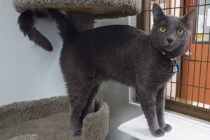 When your mom says, “Loves life, very outgoing, loves to be petted, great with all types of animals and people of all ages,” you know it was a tearful day for her when she had to relinquish me and my housemates, Kimo and Hattie Mae. Divorce is never pretty, but when it involves losing cherished pets, it’s even harder (on both humans and animals). She would have taken us all in a heartbeat, but she had to move out of state to a place that didn’t allow pets (I think those places should be outlawed!). I’m a 3 1/2-year-old Russian Blue, and if all those attributes have gotten your attention, come meet me – you’ll be wowed!