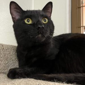 My lustrous black fur coat is just perfect for petting, and I am just perfect for playing and fitting into an active home. I’m gentle and tolerant of children. For a few months I lived with a family whose other resident cat didn’t like me, so they brought me to The Animal League knowing that I was very adoptable. I enjoy playing with soft toys, usually balls. (Perhaps I’m practicing soccer?) Very friendly, I desire human interaction. You could say I’m no snuggle slouch, too. Would you like a daily dose of adorable? Well, then come meet me! We might be perfect for each other! I’m at the head of the line for love and attention.
