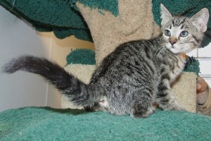 If you’ve even had the good fortune to have a passel of almost identically-marked tabby kittens clambering all over you vying for affection, you’ll know what a treat the volunteers and visitors had when my five siblings and I arrived and were added to an already tabby-laden room! Well, quite a few of them have already been adopted, but I’m still here and am half-past ready to move on to a home where I can bestow all my love on my very own people. Tabbies of all sorts are some of the most outgoing of felines, so you can be pretty sure that I intend to perpetuate that tradition throughout my life! Why not spend yours with me (or maybe another tabby too) ‘cuz you’ll be sure to double your (and our) fun!