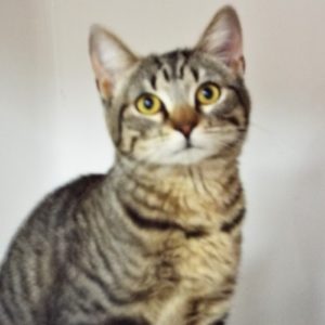 When I was living outside for a while, I got stuck in a tree after I tried to escape some other cats that were picking on me. A nice lady rescued me, fed me, and brought me here to The Animal League. I am getting used to the human attention here, and really like being petted and scratched. That gets me purring, “making biscuits,” and rubbing the obliging hand offering me such treats. But so far, I draw the line at being brushed. Since I have short hair that shouldn’t be a problem. I’m a handsome tabby with black stripes and unusual, gorgeous orange-gold eyes. Why not come meet me and let me charm you?