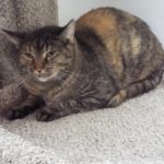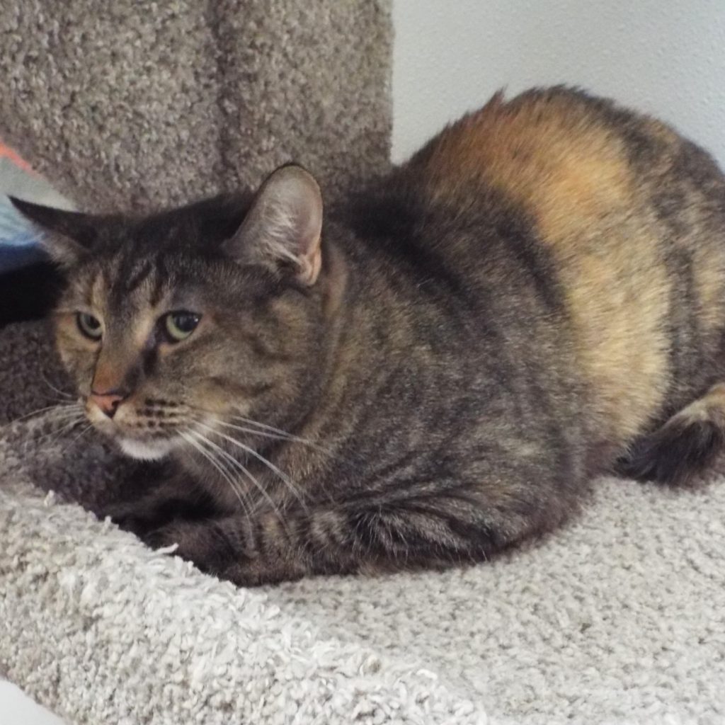 I’m a beautiful Torbie – that means I have a coat of many colors, with an orange waistband of fur around my middle. I forgot to smile when they took my picture, so I look grumpy. Initially I’m shy but will warm to a gentle touch. I like playing with stick toys, watching TV, and cuddling with my human. I’ll purr for you when you pet me around my face and chin. I used to live with two teenagers, so kids are okay with me. My sister, Cinnamon, and I no longer get along, so she and I are here at The Animal League waiting for new separate homes. Want to come cuddle with me?
