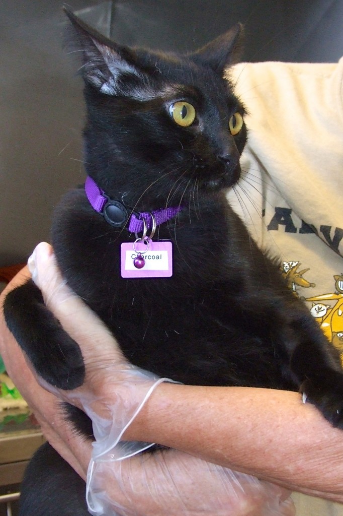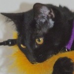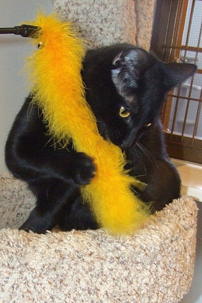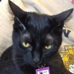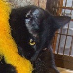My family lost their home and had to move in with a relative who had a lot of ginormous dogs that weren’t the least bit cat friendly. To add to the upheaval in my life, I was pregnant when I arrived, so went to live with a foster mom until my babies were born, raised, and off on their own. So finally it’s MY turn to sit in the spotlight! I’m a playful, sweet youngster with glossy black fur who loves kids, to be chucked under the chin, and just be near you. And in addition to my personality, remember that black is slimming so holding me will make you look extra slender!