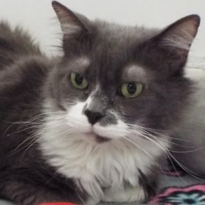 You could say I’m at that mellow time of life—going with the flow and easy going. My dad is moving out of the country so I can’t go, and I’m hoping to score a new home. Dad says I’m shy with other cats, which accounts for me kind of hiding out here at The Animal League. However, I’ve been around dogs, and people are A-OK. You can brush and pet me, and I’ll sleep anywhere. My grey and white fur is very soft. I’m not too mellow to play with strings and other toys. Why not come meet me and see if I could fit into your home?