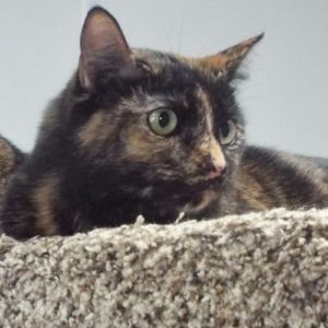 When I came to The Animal League as a kitten six years ago, I was adopted with another kitten and lived happily with my family. I’m looking for a new home now (without my buddy, who has already been adopted). I’m hanging out in a corner but will come out when volunteers coax me. I purr my appreciation for their petting and scratching. I’m pretty big, with a beautiful tortoiseshell coat. It looks like I’m wearing a black mask, and I have white feet. I’m on the prowl for the right person to come claim me! Please come meet me.