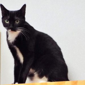 I am a handsome tuxedo cat with a neat bow tie who’s looking for human companionship. I like to play in crinkle tunnels, but I really love to be petted by my human. I head-butt to get your attention and quickly snuggle into your arms. I readily accept a rub of ears and throat, pronouncing my satisfaction with a contented purr. I’m a friendly guy who was brought to The Animal League from another shelter. For a time, another cat and I lived with a foster family who declared me “wonderful!” I quite agree! The only risk you run in befriending a cat is enriching yourself. So please come in to meet me!