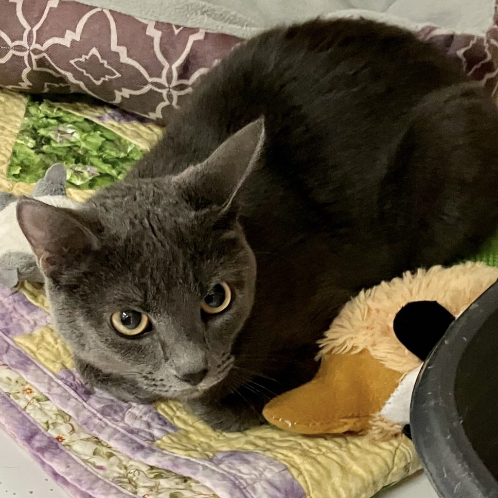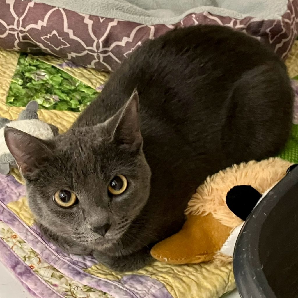 Barely passed “kittenhood,” I’m a sweet little darling with soft gray fur coat and tan eyes. Quite a striking combination! There are several shades of gray, and my fur coat is one of the prettiest! I like being brushed. I express myself in tiny bird-like trill meows. I’m cute and endearing to volunteers at The Animal League. May I be that to you? I need my own human(s) to care for me and love me. For several months another kitty and I lived with a woman who found that she couldn’t keep us so brought us to The Animal League. I’m missing “home” and hope you’ll share your home with me!