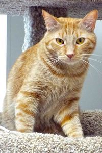 There’s only one thing they can say for sure about me: I was found dodging traffic on Duval Mine Road, so I’ve undoubtedly used up at least one of my nine lives! I was a little “shell shocked” when I arrived, but now I’m finding that being “out and about” is great fun. I’m a sweet, mellow guy who’s welcomes attention, enjoys petting and nice quiet chats with the volunteers (they say you can “do anything” with me!). I pretty much ignore other cats (humans are ever so much nicer!), so let’s get together and talk about how wonderful it would be to have a warm safe home, ‘cause I’m definitely up for that!