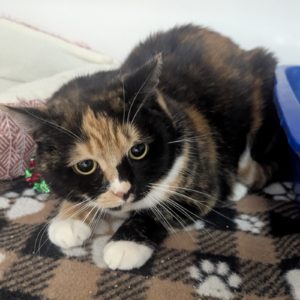 Do you have patience –even just a little? I’m a cute calico who loves belly and back scratches – when I get to know you. I can be quite playful and kitten-like, but I’m shy and hiding at The Animal League. I’m still adjusting to my daily routine here. Someone described me as a “very sweet cat.” My paws have white “boots,” and I sport a white bib – very stylish! Although I was outside when found, I’m really an indoor girl. I lived with a family for about 4-1/2 years until someone developed allergies. My shots are up to date and I’m ready to go. I’ve lived with both dogs and cats. Do you have room for me?