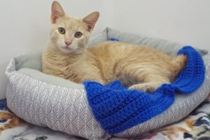 I’m not sure why I wound up here, but I am making the most of it! I am one busy young boy who loves to play. However, I’m well rounded: I will sit in your lap and talk to you while you pet and brush me. I’m not exactly shy, and I love people. I’m a pretty buff color with matching yellow eyes and I’m a Manx, with just a short stubby tail. Volunteers are nice here and I feel safe—but I really want a home of my own. I can keep you entertained with my antics and give you lots of affection! Come on by and meet me!