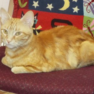 Since I was a stray living on the streets down south, I can’t tell you much about my past. However, somewhere along the line someone was nice to me because I like people! I’m a fluffy orange tabby girl with extra-long legs—do you think I’m still growing into them? I’m only a year old. I’ve discovered the outdoor catio here, and I’ve been sleeping out there on a chair where the volunteers can easily reach me for petting, brushing and scratching. I’m ready for a real home with humans who will keep me safe and allow me to be their companion.
