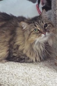 When mom died my whole feline family of eleven had to find new digs. Luckily we were brought to The Animal League. We all get along together and enjoy human companionship. I’m really looking for someone to pay attention to me, and will usually follow the volunteers around the room so they will give it to me. I love laps, playing and petting, and will rub your face and purr for you. My long-haired coat is gorgeous and my personality is sparkling! I do have an eye condition that hampers my vision in one eye, but otherwise it doesn’t seem to bother me right now and doesn’t require any treatment. Won’t you come meet me?