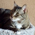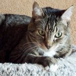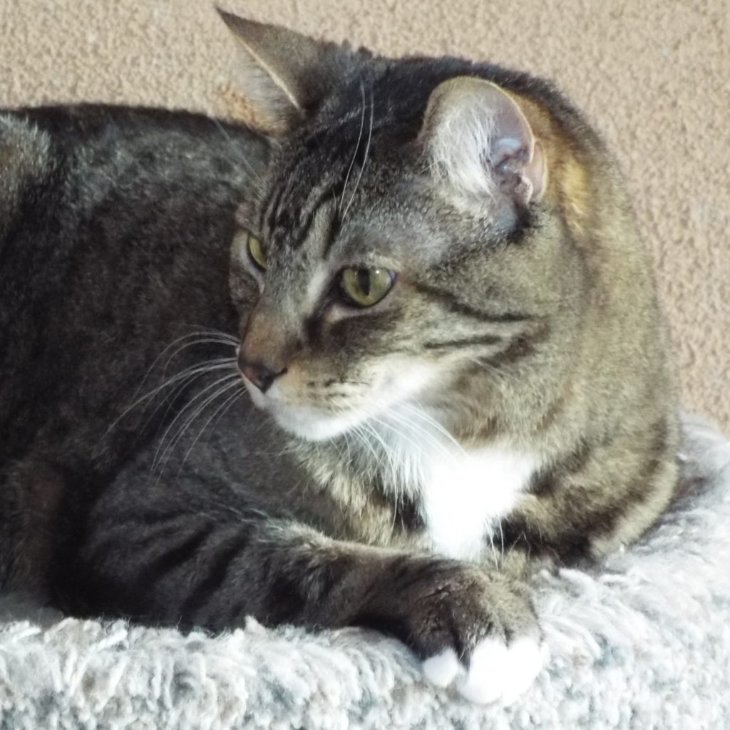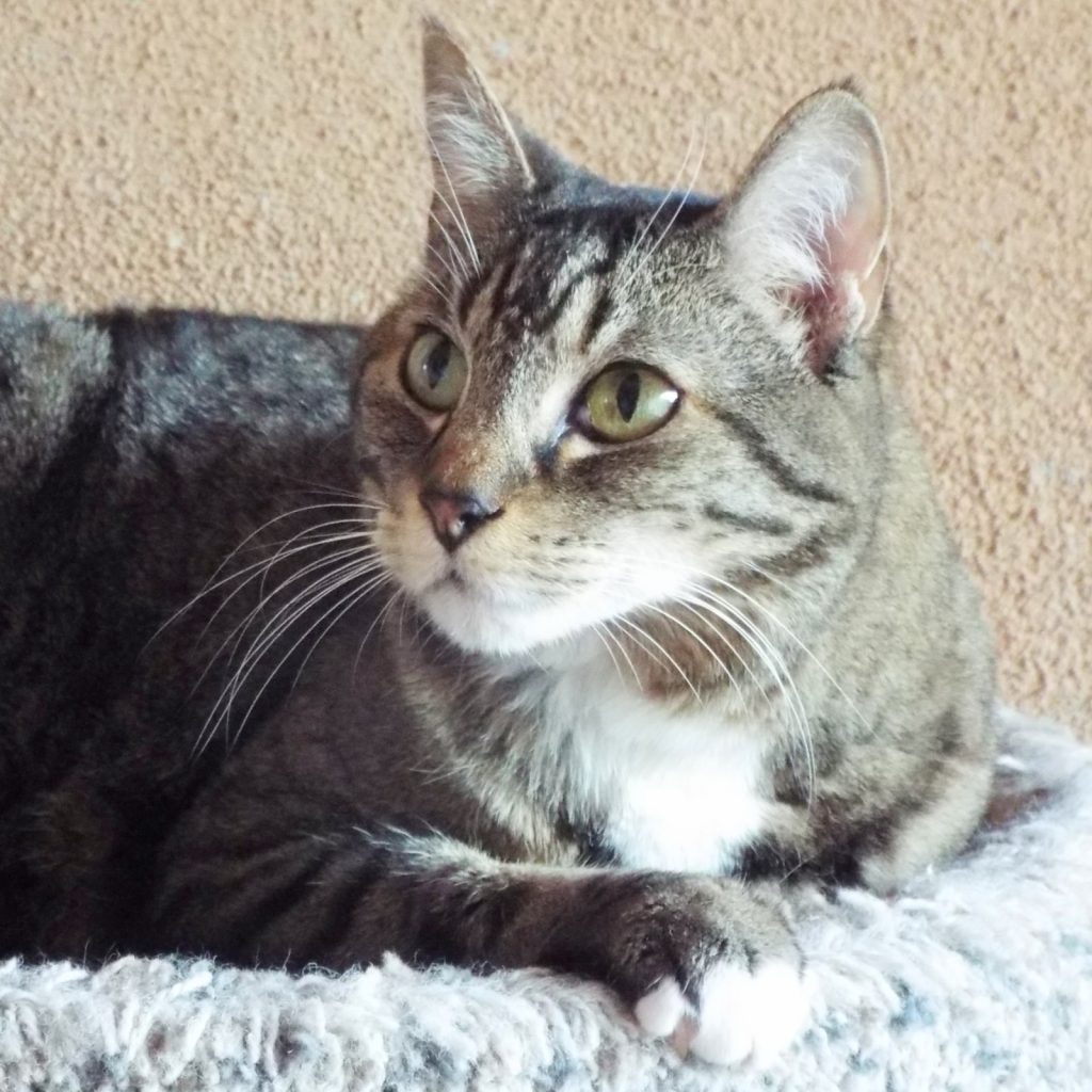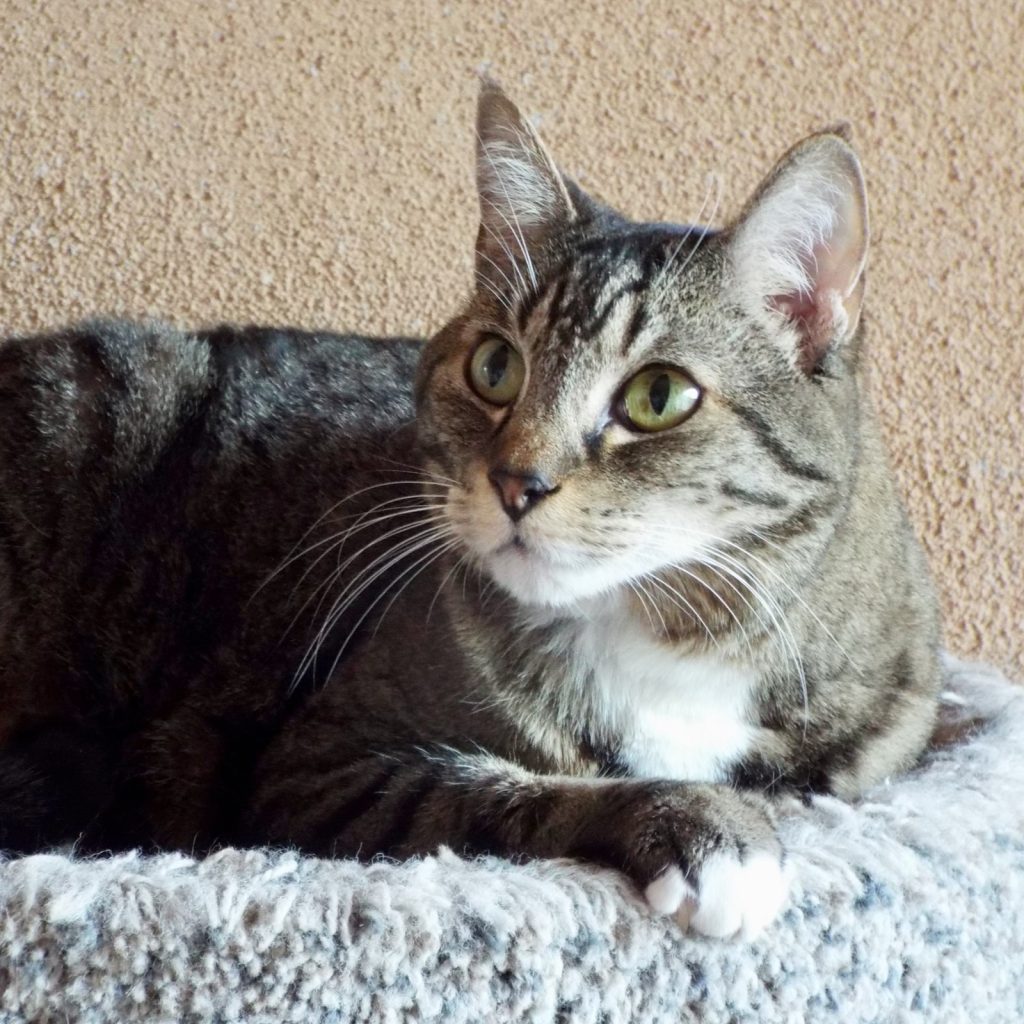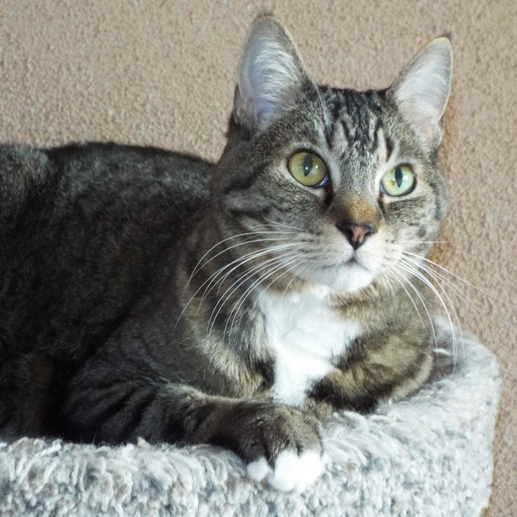 I lived with my human for the past two years, but health issues forced a change for both of us. They said I was aloof with strangers, but here at The Animal League I’m so friendly! I’ve learned how to jump in laps for attention, and I enjoy petting, brushing and scratching behind my ears. I will talk to you and I really like cat trees. I’m a middle-aged girl with a pretty tabby coat with a white bib and feet. I’d love to find a home where I can relax and become your companion. Why not come see me?