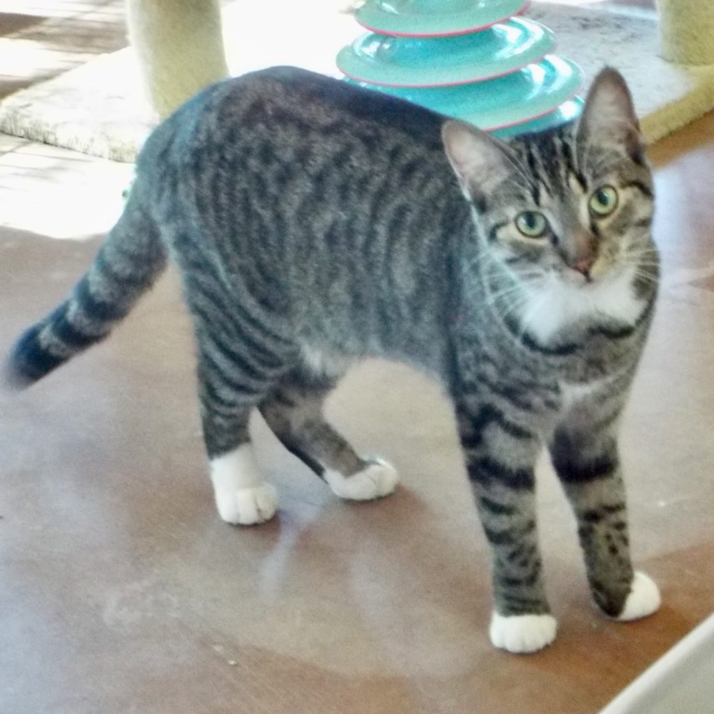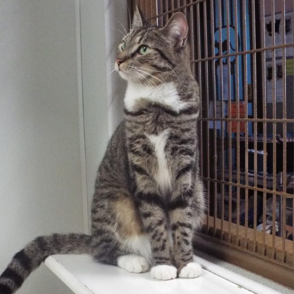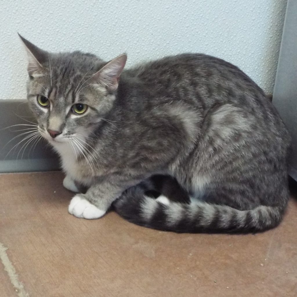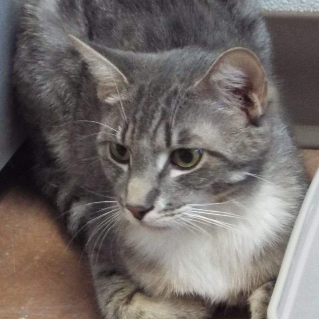 I was born in the great outdoors, and someone brought me and my siblings here to The Animal League where it’s safe. I appreciate having regular meals! I’m shy around people and I haven’t quite warmed up to the volunteers here. I probably need a quieter place to develop my softer side and learn to trust humans. I seem to get along fine with the other cats here. I’m a youthful, handsome grey tabby with white patches and big yellow eyes. I’m hoping a kind person who has lots of patience will take a chance on me. I promise to try my best.