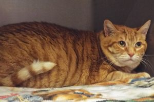 OK, I’ve gotta be honest and say I never met a food morsel I didn’t like, so that’s undoubtedly why I’m, uh, “pleasingly plump!” But just like humans, all you need to do is monitor my intake (yes, calories DO count!), and I’ll slim down in no time. My mom moved to Germany and couldn’t take my friend, Stumpy, and me with her, so we’re here hoping we can stay together in new digs (although I guess we’d fare pretty well on our own, too). Mom said although I’m independent and sometimes shy, I’m very “well behaved,” like to sit on the couch and watch TV with her, and then curl up with her in bed. I don’t do well with dogs or “strange” cats, but if it’s just us, life will be totally grand!