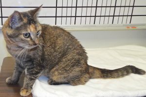 You think of “fluffy” as being longhaired and powder puffy, but actually I have a nice (easily maintained!) short Torbie coat that’s wonderfully soft and simply invites stroking! My rescuer said, “She came to my door twice, so I fed her and brought her to TALGV because we have a lot of coyotes in the area. She likes to be petted and is a real lap cat.” Yeah, well laps are WAY better than hiding from predators, and they have the added benefit of dispensing affection (which is usually followed by food)! I’m about 7 years old, an age that’s acquired wisdom and appreciation for the good things in life. Life’s always better when you can share it with someone, so let’s “get it on” together!