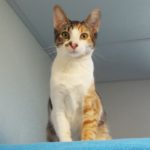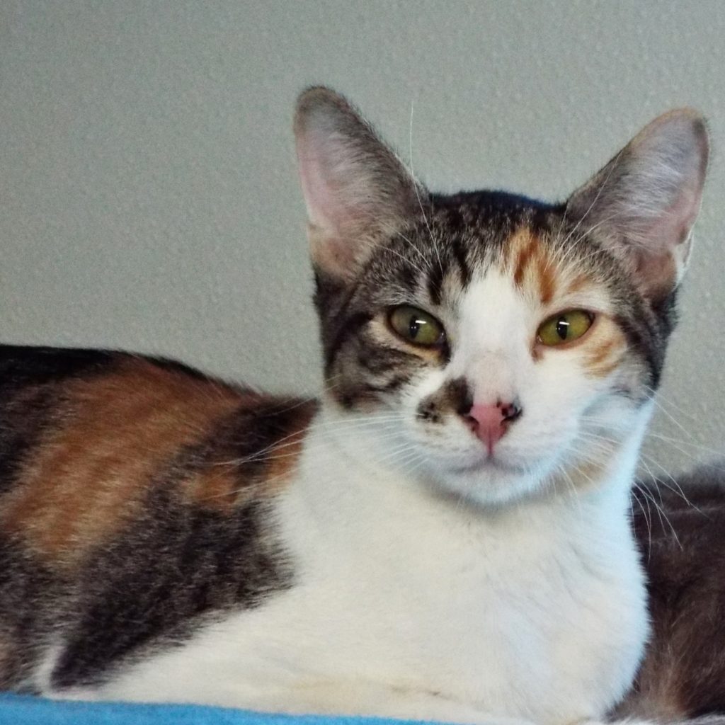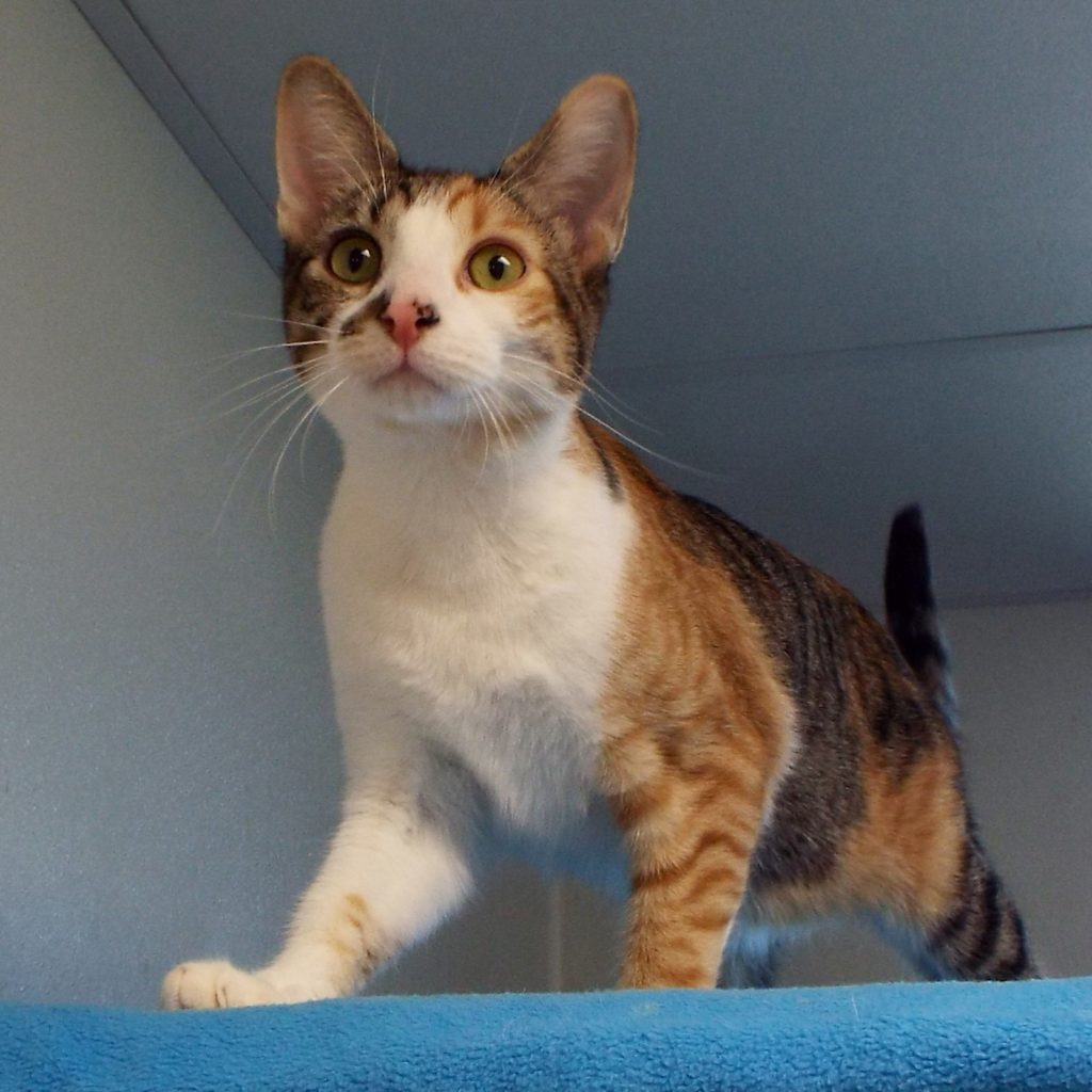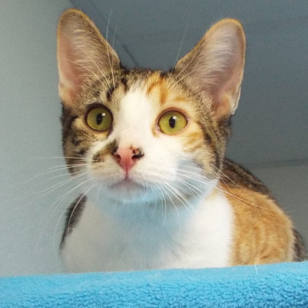 I was brought into The Animal League with several other cats because our humans had too many pets in their home. We felines all get along because we are all sweet and friendly. Just ask any volunteer here! I’m particularly lovely with a “beauty mark” on my white chin. My soft fur is white, orange and black – just what you’d expect from a calico cat! I love to be petted. I love to curl up to take my naps. I bet your lap would make a perfect place for my next nap! What do you say? Please come in so we can meet. Are you ready to expand your social circle? I’m just waiting to meet you!