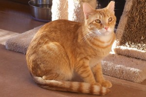 When I first arrived at TALGV I was mighty shy I can tell you (I’d been living on my own for a while and at some time was the recipient of a clipped left ear courtesy of a trap/neuter/release program), but the volunteers have been working with me and say I’ve made great strides in the getting-to-know-how-nice-humans-can-be department. I can be playful and affectionate (I’m not a lap cat yet, but you never know!), and do enjoy some of my feline friends here (especially Frank and Russell who give me confidence). I’m a handsome orange marmalade guy, and if you give me some time and patience, I’m pretty sure I’ll come around and may even live up to my name someday!