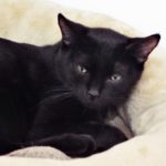 This first year of my life has been rather eventful. I was found at a Tucson gas station: alone, skinny and very hungry with patches of fur gone. My rescuer brought me to her home for a few days. Because I was so scared of her barking dogs, she brought me to The Animal League where I would have the opportunity to show off my quiet, sweet personality. Upon arrival, I was put into foster care until I had my kittens. Now we are all ready to be adopted. I am ready to be cared for in my own quiet home. I have a silky black fur coat. Pet me, please. I need my own human!