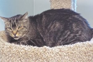 When mom died my whole feline family of eleven had to find new digs. Luckily we were brought to The Animal League. We all get along together and enjoy human companionship. I’m adjusting to being here and enjoy hanging out in a cubby much of the time, but as soon as someone is available to pet me I come right out. I like to be petted. I’m a black tabby with handsome black stripes over my grey coat. At my age I come with Vet Care Support for Life, and what’s not to like about that? Why not come have a look-see and find out if we are meant for each other?