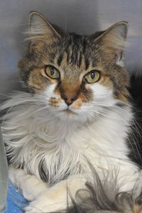 It’s kind of depressing when one of your people isn’t enormously fond of you, but that’s what happened for me (and my friend, Tuaca). After my beloved dad died, mom quickly brought us here because she simply wasn’t a “cat person” and no longer wanted to care for us. Well, I’m betting there are LOTS of cat people in the area who’d love to care for a sweet, diminutive, 8-year-old gal like me. (I’m on a special diet, so that’s the only “extra care” I need!). I’m tossing my hat in the adoption ring in hopes that you’ll fall really hard, and that won’t happen unless you come meet me, so get a move on!