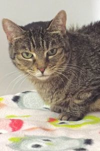 “These are a bunch of really nice, sweet cats.” That’s what they said when we came to TALGV from PACC because they were so overcrowded. We were lucky that there was space for us here, but I must admit going through the intake “rigmarole” at both places really left us a bit confused (you can be certain I’m well vetted though!). At heart, I’m a loving (and vocal!) tabby lady who got along well with all my feline companions (they’ve been adopted, lucky them!), so I hope that my days of not being sure where I’m going to wake up in the morning are behind me because that place will always be with you!  (5-2020)