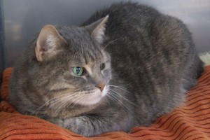 Backyard sheds provide more than storage for people’s things — they also provide shelter for lost cats! I spent two weeks hiding in one in a Sahuarita neighborhood, and was so glad to finally have been brought here as the weather was warming up fast and food and water was getting pretty sparse (those people won’t have any mice worries for a while though!). Having spent enough time outdoors, I’m now ready to move into a nice cool home where I don’t have to be looking over my shoulder for encroaching desert denizens. I’m a lovely muted tabby/tortoiseshell lady, and I’d love to have long chats with you about my peripatetic life while checking everything out from a nice big window!