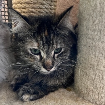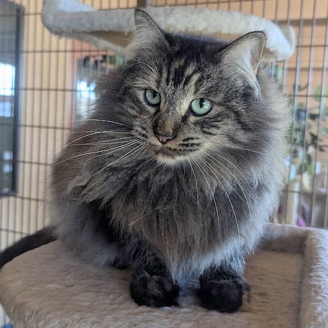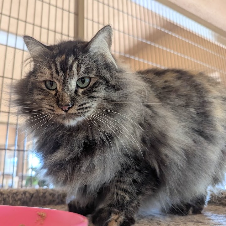Oh, dear, what can the matter be? I’m at The Animal League – again! Previously I was a stray who had kittens, but motherhood ran its course and I was adopted. Then, my human developed health issues. So sorry. Now I need another home. I’ve been “fixed” and have all my shots. I’m a sweet fluffy feline with luscious green eyes and soft long fur. Since I’m a bit shy, do you have the patience to help my better qualities shine? I’m friendly and more sociable than ever. I’ll play with you if you take the time with me. If you’re looking for a beautiful feline companion, perhaps I could be your girl forever?