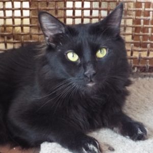 When I first arrived at The Animal League I cried. I missed my human who passed away, as well as my feline companion who has already been adopted. However, true to my nature, I’m adjusting to my circumstances while I wait for my next human(s) to love. What a handsome lad I am with a sleek black fur coat. I love being brushed. I’m shy with strangers but warm up quickly to human attention. I think I like everyone, although I’ve not been around children. I have lived with dogs just fine. I like to play with kitty toys. So, what’s not to like about me? If you’re looking for an aristocratic cat, I’m yours!