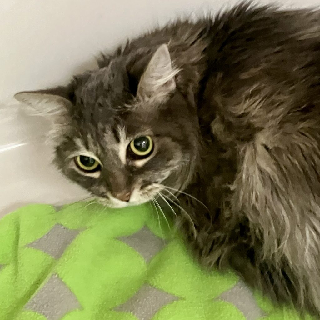 I’m the shy one; my sister Maggie was outgoing and already has been adopted. We both lived our entire lives with a family being treated like the ladies we are. When human illness occurred, we were brought to The Animal League. I’m learning to accept the attention of the volunteers. I like them assuring me that my life will be okay again. I like to be brushed on my head and shoulders only. I tend to keep to myself. The second act of my drama should be to find another family to love and care for me. How about it? Is that you? I would revel in the simple pleasures of taking it easy with you!