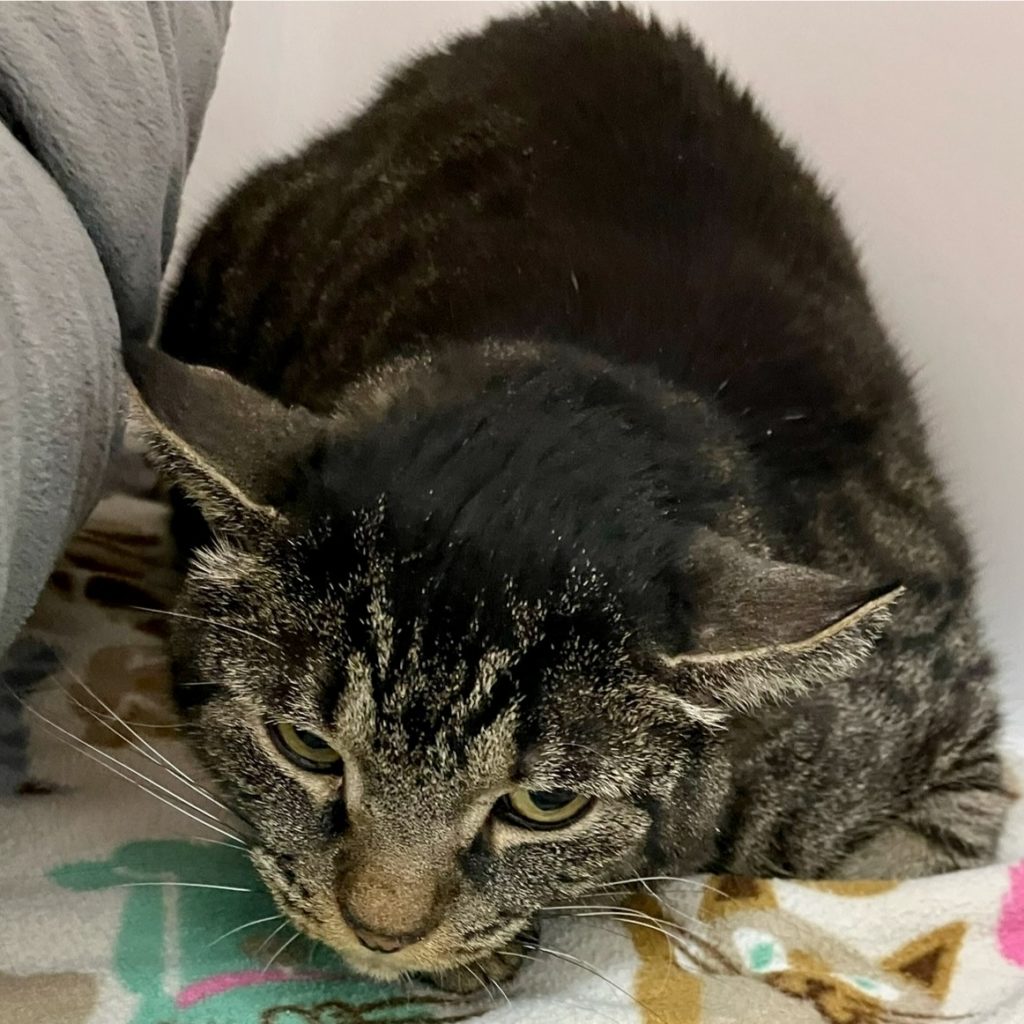Double whammy! First, I lost the only human I’ve known when he went into hospice care. Then my feline friend was adopted from The Animal League. We had been such an agreeable team. I slept with my human dad. At times I was kitten-like during playtime. I could be laid back, then outgoing once I got to know visitors. Volunteers are wooing me out of my hiding here as I adjust to my new surroundings. I appreciate them! One calls me “a love of a love.” I’ll try to live up to that if you meet me. I long for human companionship. How about it? Are you ready for me?