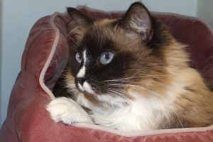 Everyone’s trying to decide which I am – a Snowshoe or a Ragdoll – but in either case, you can bet I live up to the captivating traits of both (which are pretty similar actually!). I love people, have lived with two dogs, and until recently when the older one started to dominate and intimidate me, got along fine with them. My mom said, “Mello is a warm, loving lady who enjoys being brushed and will sit in your lap and watch TV for hours.” (She also said that I’d love to sleep in bed with you if allowed – which I wasn’t – I think that honor “went to the dogs”!) At any rate, my name says it all, so if you give me a chance, I’ll fill your house with affection – one purr at a time!