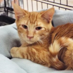 I am a sweetheart from head to tail! As a young kitten I was adopted from The Animal League by a family who had children and other cats. I got along fine with everyone. Then, bam! Lifestyles changed and I was returned to The Animal League to await my next home. If you want friendly and playful, I’m your guy. Actually, I prefer human companionship over toys! Can you believe that? Volunteers find me irresistible in sharing my affection with them. I have gorgeous orange tabby markings and come-hither golden eyes. I’m just a love-sponge soaking up every ounce of affection that comes my way! Will you please come meet me? We could become best friends.