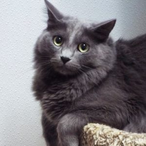 Gosh darn it, I was just settling in with my family and then mom got ill and couldn’t care for me. I lived with another cat, and was gentle with children. Mom says I’m very playful and then will “chill out like ice.” I like to perch up high where I can see everything—I’m curious about what humans do! I’m friendly and cuddly, and I like the attention from the volunteers here. My coat is a handsome fluffy grey. If you have an opening in your home for a cat who will play, cuddle, and observe from on high, please come meet me!