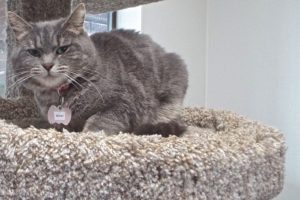 Here I am waiting to meet you! I know there are kind humans who care for us cats. Such a one was the person who brought me to The Animal League. She said, from what she knew, I was a good, sweet cat that had been abandoned by my people. I was not being fed and was hungry. “Rescue”…. Such a lovely word to me. Will you be the one who will rescue me into your home where I can shower you with my devotion? I am a lovely grey lady who is shy and cautious of humans currently. However, the kind volunteers are demonstrating what being loved feels like. Please come meet me! (Bio 12-2022)
