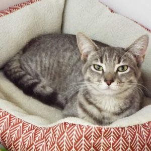 At my young age I know the meaning of the word “unwanted.” Along with another cat I was dropped off in a parking lot to fend for myself. So rude!  Another few miles and I could have come directly to The Animal League. Anyway, I’m here now and getting all the TLC I can stand. I’m a little shy and have been hanging out in a cubby. I do like petting, brushing, and playing. I’m a gray tabby, meaning I have dark stripes over my light gray fur, and my eyes are a pretty light green. Stunning, don’t you think? If you are looking for a sweet girl with good looks, come meet me.