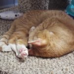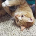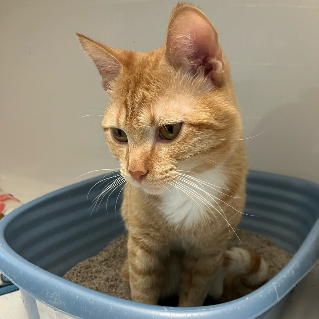 My name says it all. I’m afraid I can’t tell you anything about my earlier life—I came here as a stray and was a little upset. However I’m now “in the groove” and enjoy sitting on a low perch in the outdoor catio with some of my buddies. I like to play and will approach you for attention, but I’m not sure about brushing—what is that for? I have short hair anyway. My coat is mostly orange striped, but my belly and feet are white. I have matching coppery eyes. I’m looking for a safe home where I can enjoy a life to which I’d like to become accustomed. Got that?