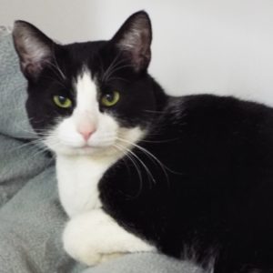 I was found wandering in the neighborhood behind TJ Maxx. Do you suppose I was shopping? I doubt it. Most likely I was trying to find my human to take me home. Instead, my kind rescuer took me into her backyard to feed me and find my owner. My owner never showed up so here I am at The Animal League hoping to be adopted by my new human(s). Is that you? My black and white fur markings make me a beauty! Don’t you agree? I’m in need of a good home where I am safe to play and offer companionship. Remember: those we rescue, rescue us. I promise to be your best feline friend!