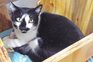 Maybe it was my markings or maybe it was my curiosity or maybe it was just happenstance, but in any case, I’m certainly well named. Also, “nosing” around the San Ignacio neighborhood for two weeks eventually paid off and bought me a one-way ticket here (I’m hoping the return trip will be to your house!). Since I was wearing a flea collar when found, someone must have loved me once (although allowing me outside isn’t the best way to show that love!), and that’s also obvious from my enjoyment of human company (being petted and getting attention is THE BEST). So as a two-year old gal, I’m just itching to nose my way into your heart!