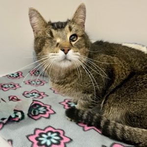 What happened to my home? I don’t know, but someone said my human had a “heart attack.” What happened to my eye? Must have lost that in a fight – outside. I’m content to be an indoor only cat now. I find my way to the food bowl by smell. As for the cat pan, I can find that too. I have a distinctive white beard and mustache around my muzzle. I love to play with my toys, and I’m an extremely sweet boy. Strangers scare me a bit, but if you come and meet me, you won’t be strange for long. I’m waiting for you at The Animal League.