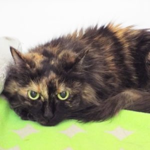 When my human passed away, the caregiver kindly took me in. However, her other cat bullied me so here I am looking for a new home! My last mom said I like a quiet environment and scare easily (isn’t that like most cats?). I slept on her bed and liked to play with a lacy stick toy. Here at The Animal League I’m getting acclimated. Although somewhat shy, I do come out for attention and you can pick me up and hold me. I’ll snuggle in your lap. I’m a beautiful torti with large round eyes and an empty place in my heart to fill up. Could that be with you?