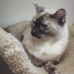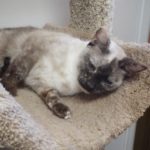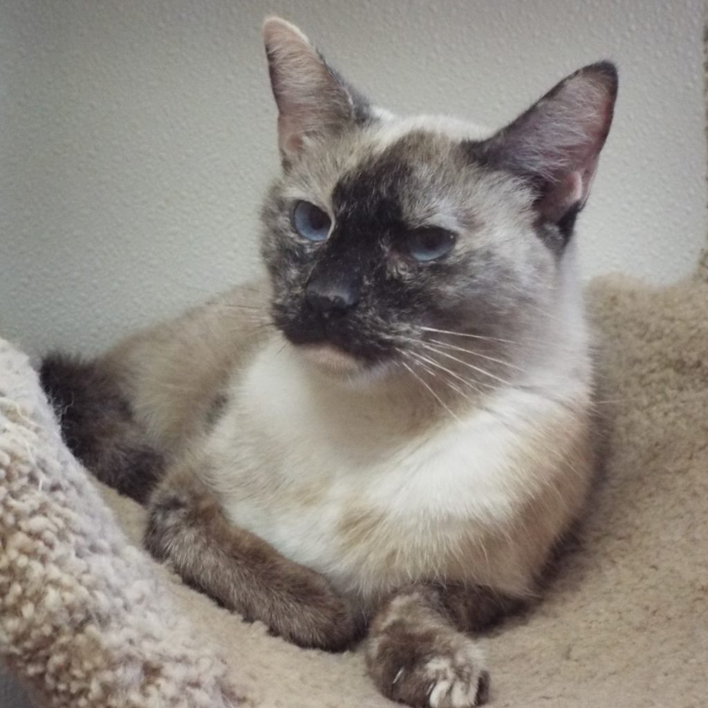 The sweetest sound I’ll ever hear is from my adopter: “you are coming home with me!” I lived my entire life (so far!) with my human mom who could no longer care for me and was moving. I’m a classy lady with baby-blue eyes. I LOVE to have my head and ears scratched, even while I’m snuggled in my domed bed. I am getting along fairly well at The Animal League, but I long for forever home. How about it? Do you have a rescuer’s heart for me? I have big love to share with you! Please come soon to spend time and get to know me!