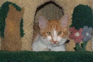 My siblings, Max, Jax, Molly, and I were born to a feral mom, but thanks to the wonderful lady whose yard we lived in, we’ve all been fed and socialized and are just as sweet as any kittens you’ve ever met. Our foster mom even made sure we got our vaccinations and were neutered, so now all we have to do is find “real” homes where we can get down to the business of being the entertaining and loving companions we’re meant to be. I’m an orange and white boy, and the shyest of the group they say, but am learning to enjoy being held more each day so I’m looking forward to finding out what a place of my very own is like. I’m ever so hopeful it will be yours!