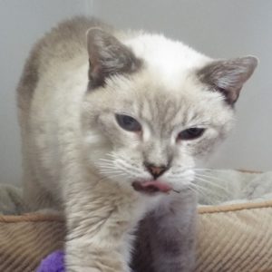 When I arrived here I was in bad shape. Having been out on my own, I was dehydrated, stuck with cactus and badly in need of dental work. The nice people here took care of me and now I’m ready for a home! I’m a friendly senior girl who comes with vet care support for life. I purr when you pet me, and will get on your lap and rub against you. I’m a pretty Snowshoe Siamese who has been used to getting, and giving, affection. Will you be my family in my elder years? I still have lots of affection to give.