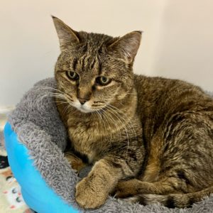 It’s sad when you outlive your human! That’s happened to me, so at my senior stage of life I find myself looking for a new human. My feline buddy of many years is also gone, to a nice home I hope. The years show on me a bit, with arthritis that gives me a hitch in my giddy-up, but with Vet Care Support for Life I’m hoping you can overlook that. I’m a mellow, sweet girl that will reward your petting with purrs. My face is oh-so-sweet and my coat is a pretty grey stripe. If you are looking for a tranquil companion that will appreciate you, come on by!